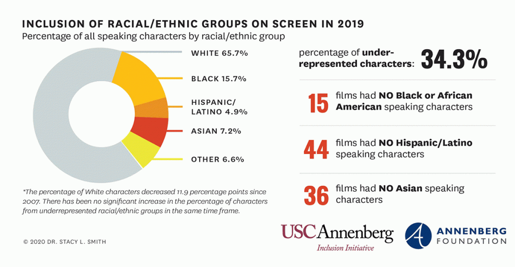 Today, colored actors are just scratching the surface and have long ways to go to even out the ratio of inclusivity with white actors. Today when people of color take on lead roles in T.V. shows and films it is sometimes treated as a special occurrence. It is good that we as a society point out such ground-breaking moments for people of color in the industry, but it is yet to feel like the norm. Movies and shows starring people of color have yet to be completely normalized. The only way it will become normalized is by evening out the ratio of inclusivity between colored actors and white actors. This will happen as the industry continues to grow the representation of people of color and continues to open up larger roles to them. It has taken a long time, but the entertainment industry is finally getting on the right track and is including people of color and giving them fair chances to thrive in lead roles. However, it is important to remember that this is just the beginning, and the entertainment industry is nowhere close to being where it needs to be when it comes to equitable inclusivity.