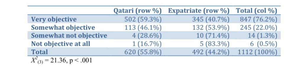Well, Al Jazeera is kind of the home media. It’s headquartered in Doha. It’s a point of national pride. I mean, Qataris are very proud that Al Jazeera is theirs. And so, they, and I assume they still do, but it is kind of a point of national pride, so it would be natural that they would trust that more so than news sources that were from outside the country. Al Jazeera has been criticized quite a lot for being very pro-Qatar in their editorial stances. As you might expect, but that didn’t necessarily bother the Qataris, so they tended to trust it.